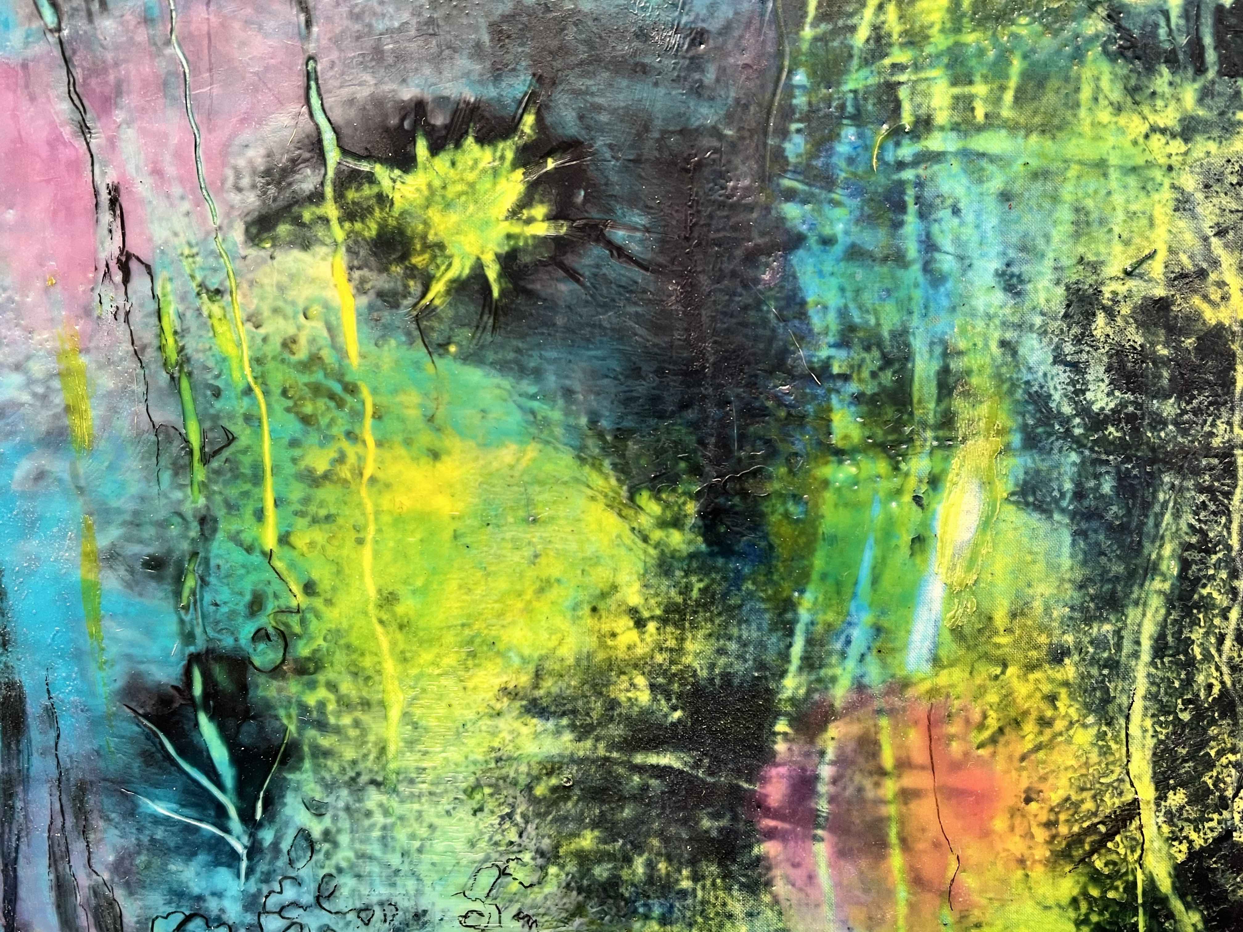 Other artists in the show use the genre of painting to explore novel aesthetics. Adele Karbowski employs encaustic wax to create a more abstract view in her vibrant work titled “Understory Revisited.” Carolyn Hansen’s acrylic “Searching for the Light” is a vibrant mashup of forms and Ruth Hauzinger’s “Friendship” is a gritty and textural non-objective image. Jeneane Lunn’s “Old Boat Yard” pairs a traditional subject with an unexpected and inventive composition.