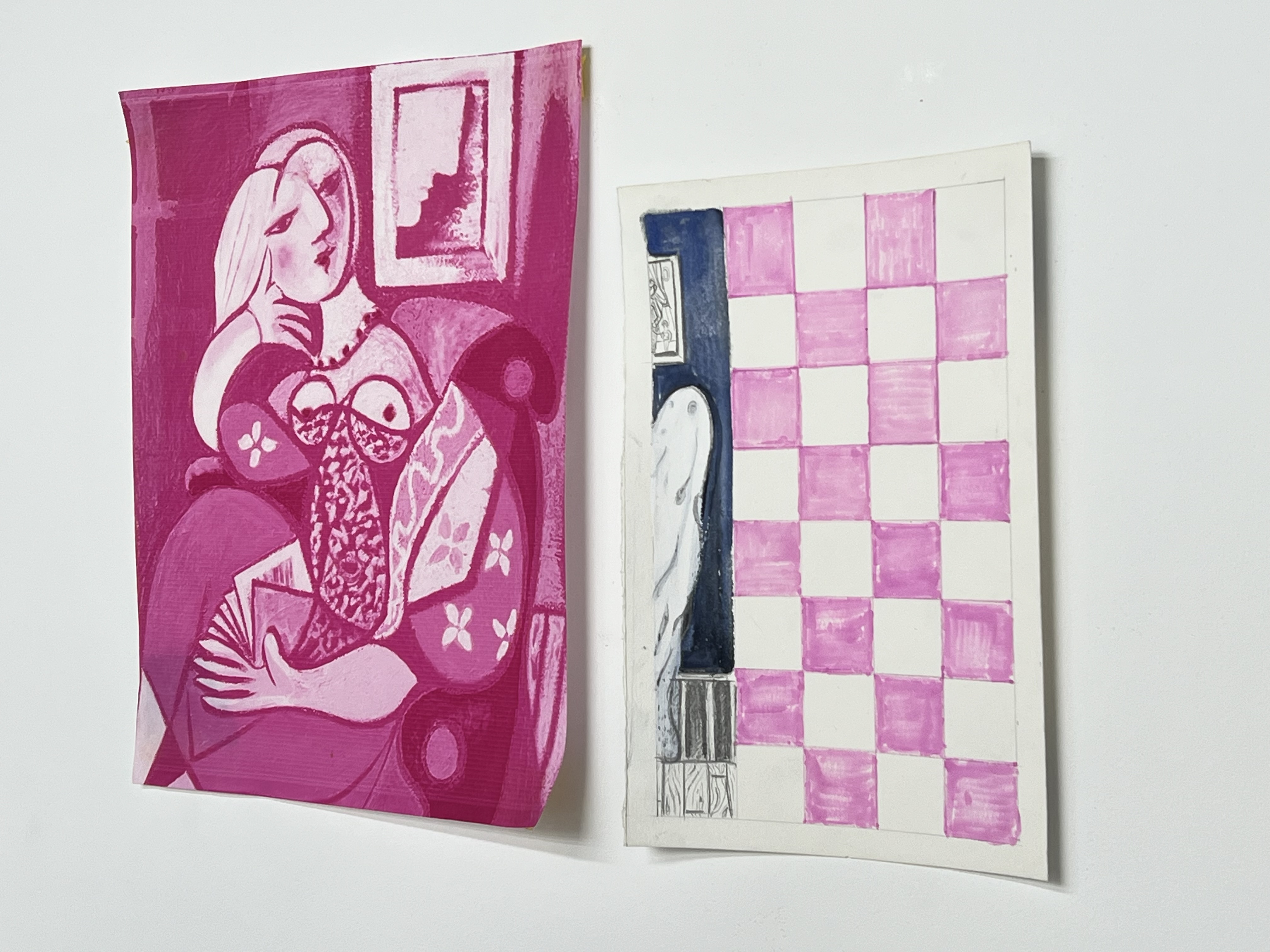 In many of the works that Aguiar has made or is making, nostalgia appears. In one finished work, he rifs on a Norman Rockwell but substitutes the original subject with a kid trying to avoid adult responsibilities. The scene is drawn from his own adolescence, complete with materials that resonate with him like skate culture and comic books. Semi-autobiographical, the scene also has a broader relevance for individuals who are Aguiar’s age.