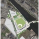 The proposed stadium sits in the midst of what was envisioned to be a park and walking bridge to connect two sides of the river.