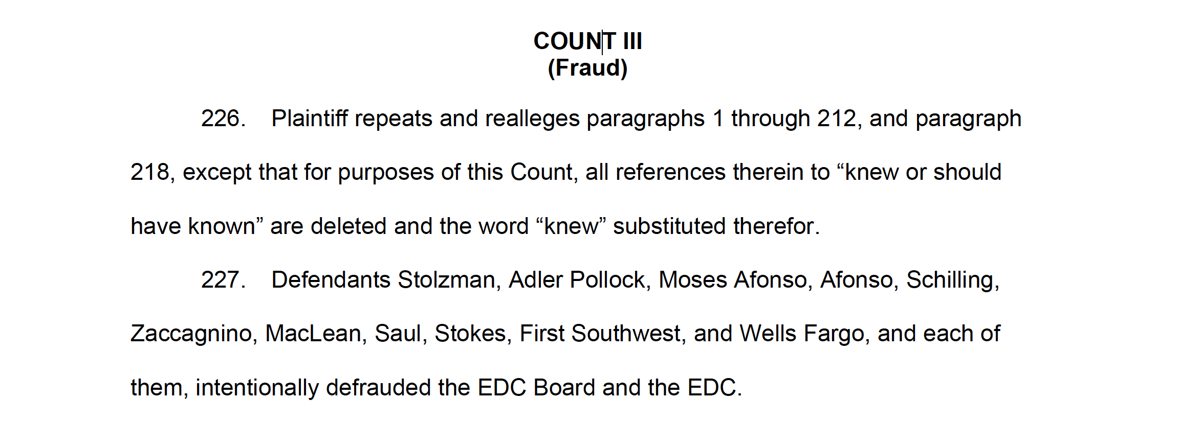 'Defendants Stolzman, Adler Pollock, Moses Afonso, Saul, Stokes, and First Southwest knew or should have known that 38 Studios would not be able to repay under either its 'worst case' or even its 'most likely' revenue projections. Such information was required to be given the EDC Board in order to make Saul’s affirmative representations concerning 'worst case' or 'most likely' projections not misleading," claimed the state's lawsuit.