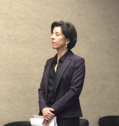 EDITOR'S NOTE: Raimondo does not allow Rhode Islanders to hear reporters' questions. Nearly all governors across the country and the White House allow reporters to ask questions directly and for the public to hear the questions and the responses.
