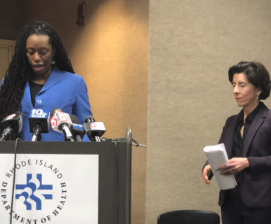 EDITOR'S NOTE: Raimondo does not allow Rhode Islanders to hear reporters' questions. Nearly all governors across the country and the White House allow reporters to ask questions directly and for the public to hear the questions and the responses.