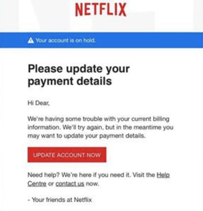 Netflix suggests these tips when questioning if an email is legitimate: