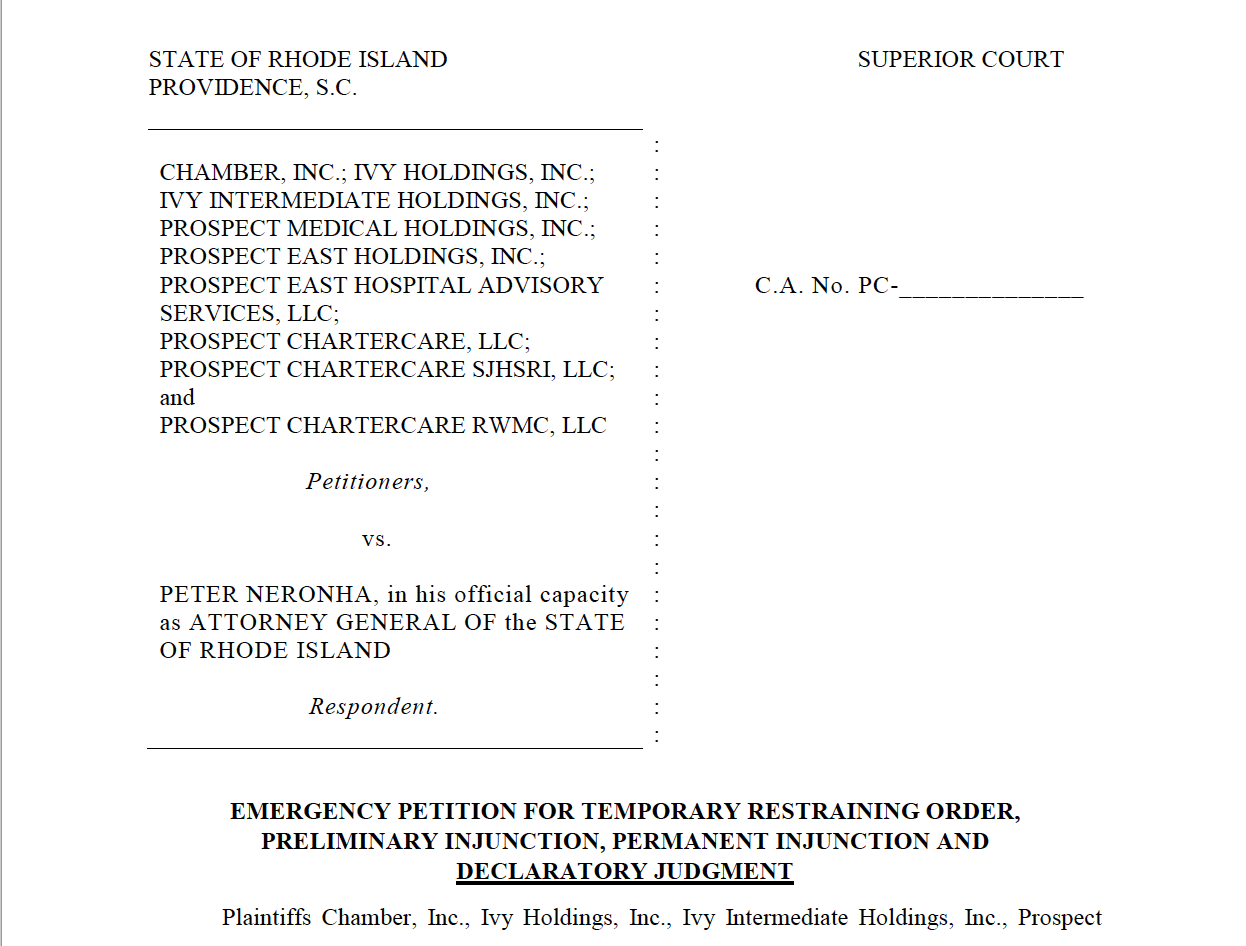Prospect Files Emergency Petition for Temporary Restraining Order Against AG Neronha