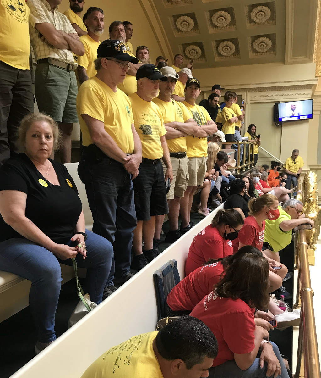 A vocal contingent of gun rights supporters tried to shout down members of the Senate during the debate.