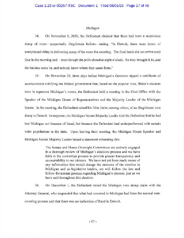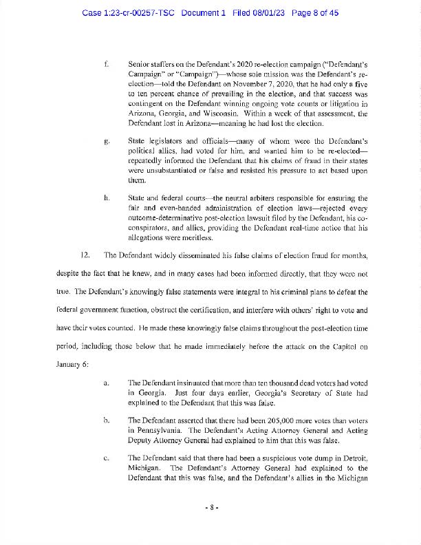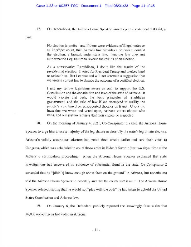 "I will have more to say about the government’s case after reviewing the indictment. The former president is entitled to the presumption of innocence but with this indictment, his candidacy means more talk about January 6th and more distractions.