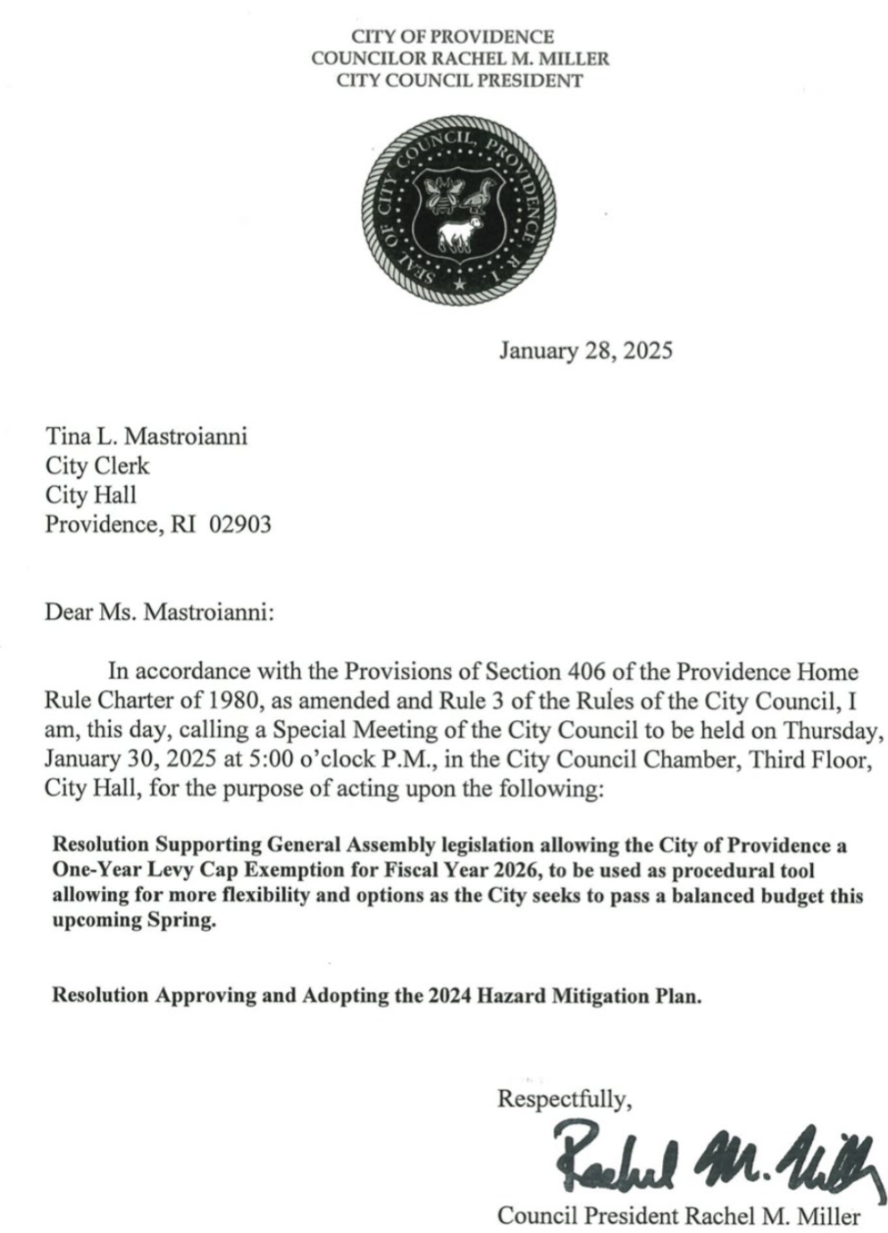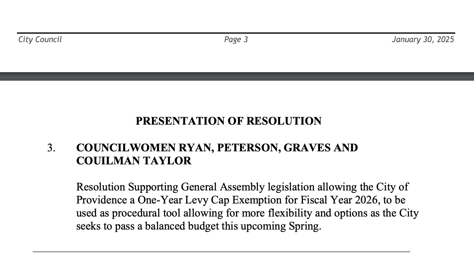 GET THE LATEST BREAKING NEWS HERE -- SIGN UP FOR GOLOCAL FREE DAILY EBLASTNow, the President of the Providence City Council is calling for the body to consider a resolution “supporting General Assembly legislation allowing the City of Providence a one-year levy cap exemption for Fiscal Year 2026.”