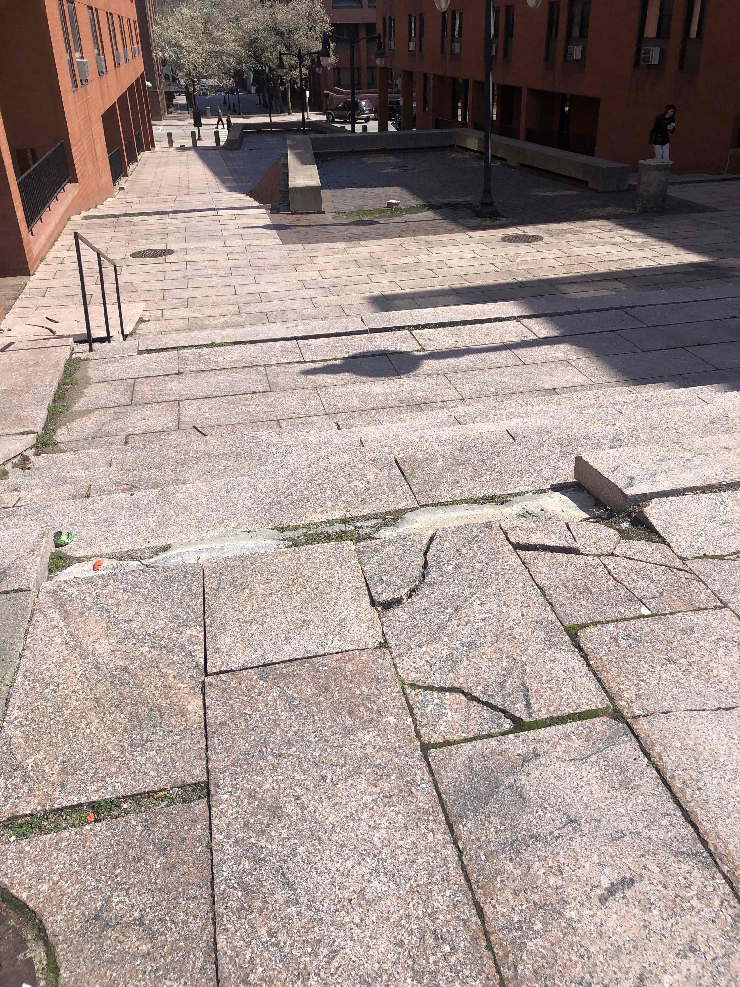 But due to the lack of maintenance by the City of Providence, Cathedral Square and especially the main stairs entrance from Empire Street are in such a state of decline that they are nearly impassable.