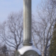 The Hiker commemorates soldiers who fought for the American empire in Cuba. They suffered bullets and mosquitos, but not snowflakes. Here the doctor was charmed by the trooper’s braving a frontal blizzard that plastered his face, torso and legs with snow but left his backside bare. He does not seem to care.