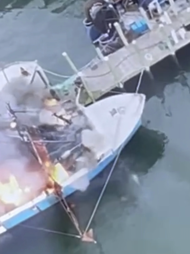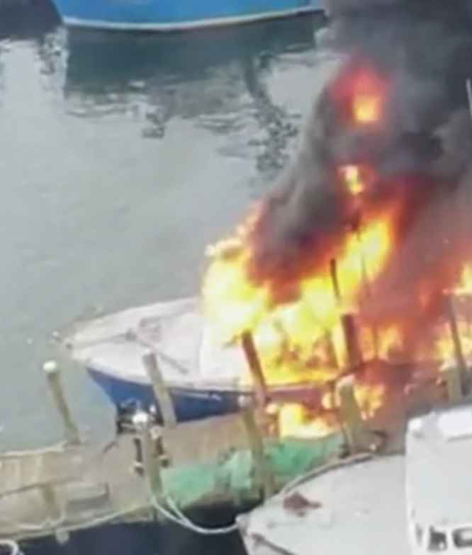 The boat burst into flames at about 6 PM on Sunday night. Smoke could be seen from miles away.