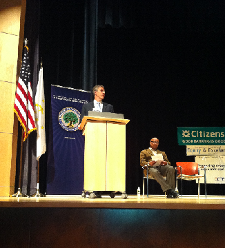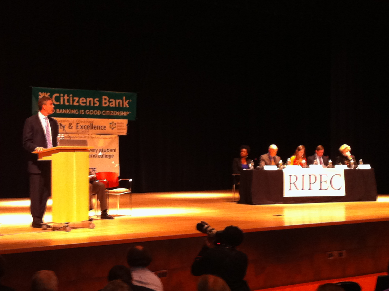 After the panel, Duncan spoke briefly with the press and was asked about Achievement First, the charter management organization that wants to open a Mayoral Academy in Providence. The organization was specifically mentioned in Rhode Island’s Race to the Top application, but the Board of Regents rejected its plan to open five schools in Cranston earlier this year.