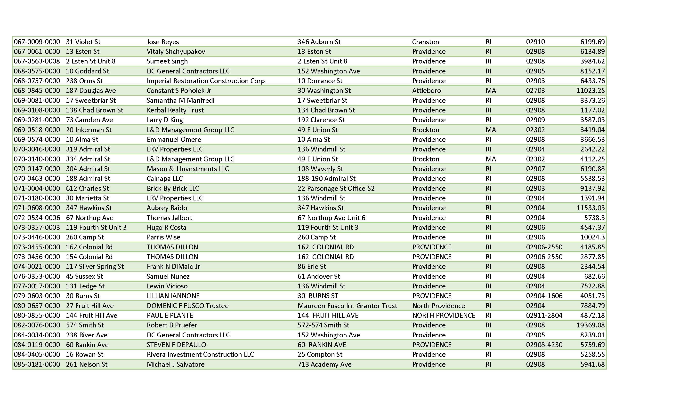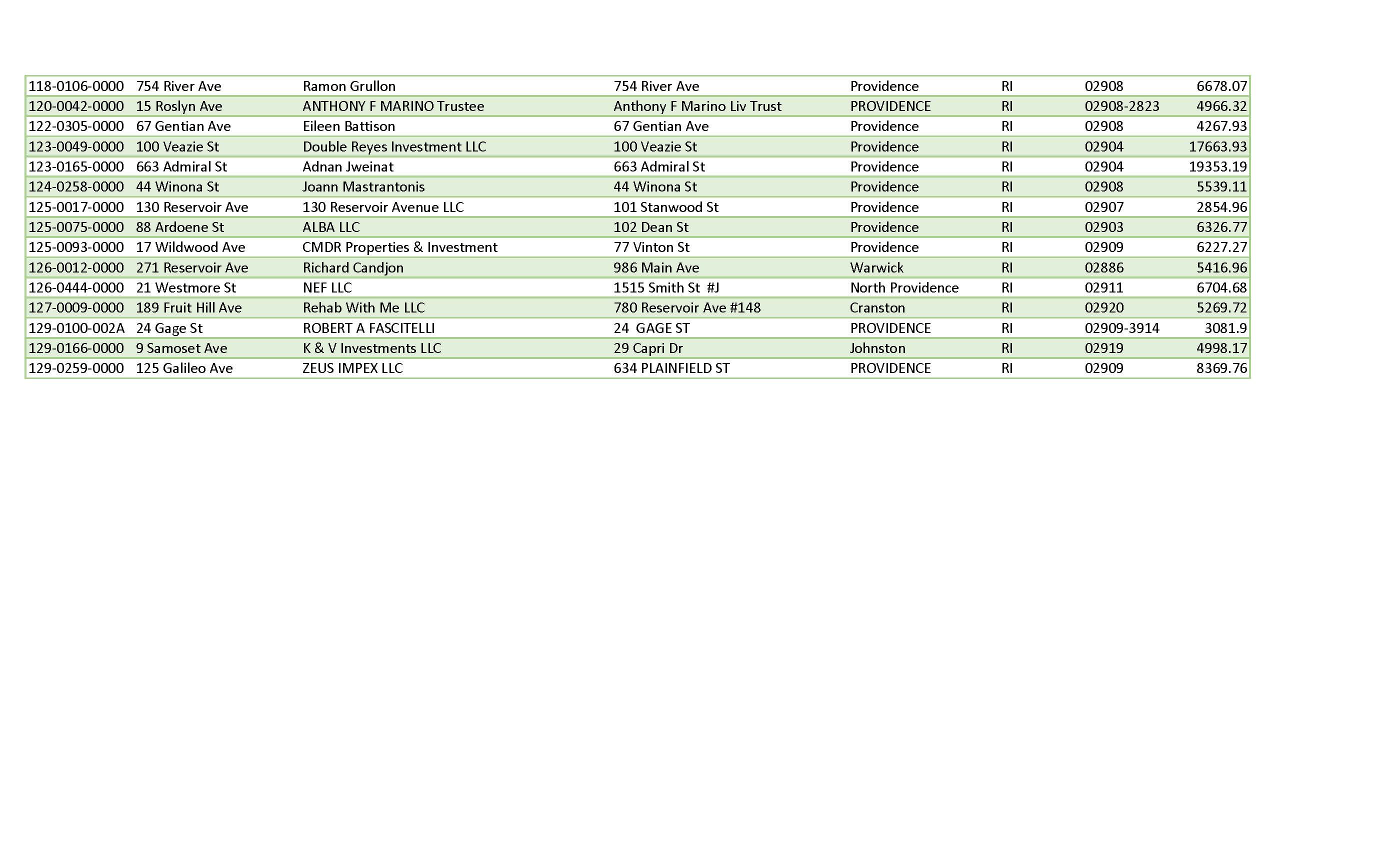 SEE THE CITY OF PROVIDENCE'S LIST OF PROPERTY TO BE AUCTIONED BELOW