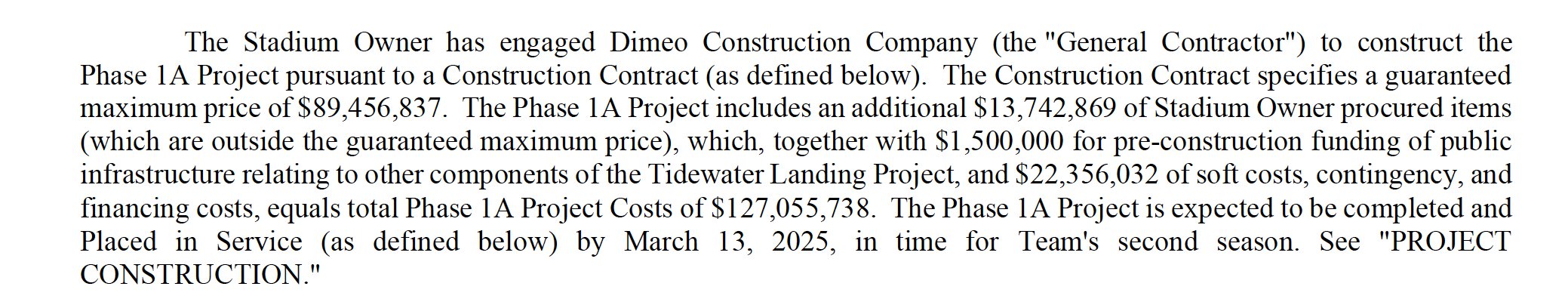 According to the bond documents, the stadium will be completed by March 13, 2025.