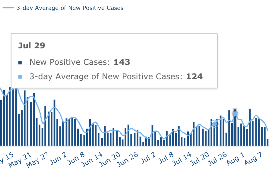 Some of the new cases announced of August 10 are likely to reflect test results going back to July 27 or older.