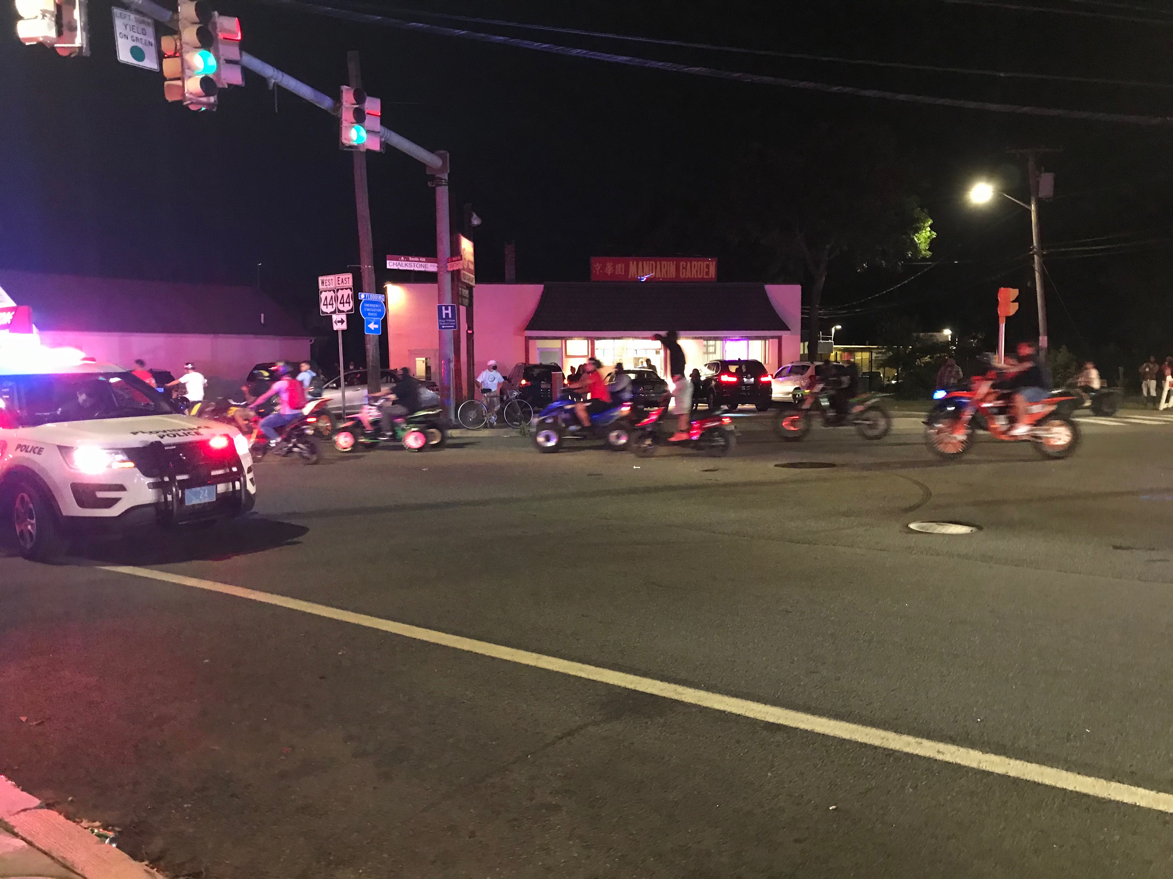 10:05 PM: Calls for approximately 50-60 ATVs, Motorcycles traveling on Route 95 South in the area of Smithfield Ave. Eventually located at Thurbers and Eddy before fleeing inbound toward Broad St. Providence PD advised.