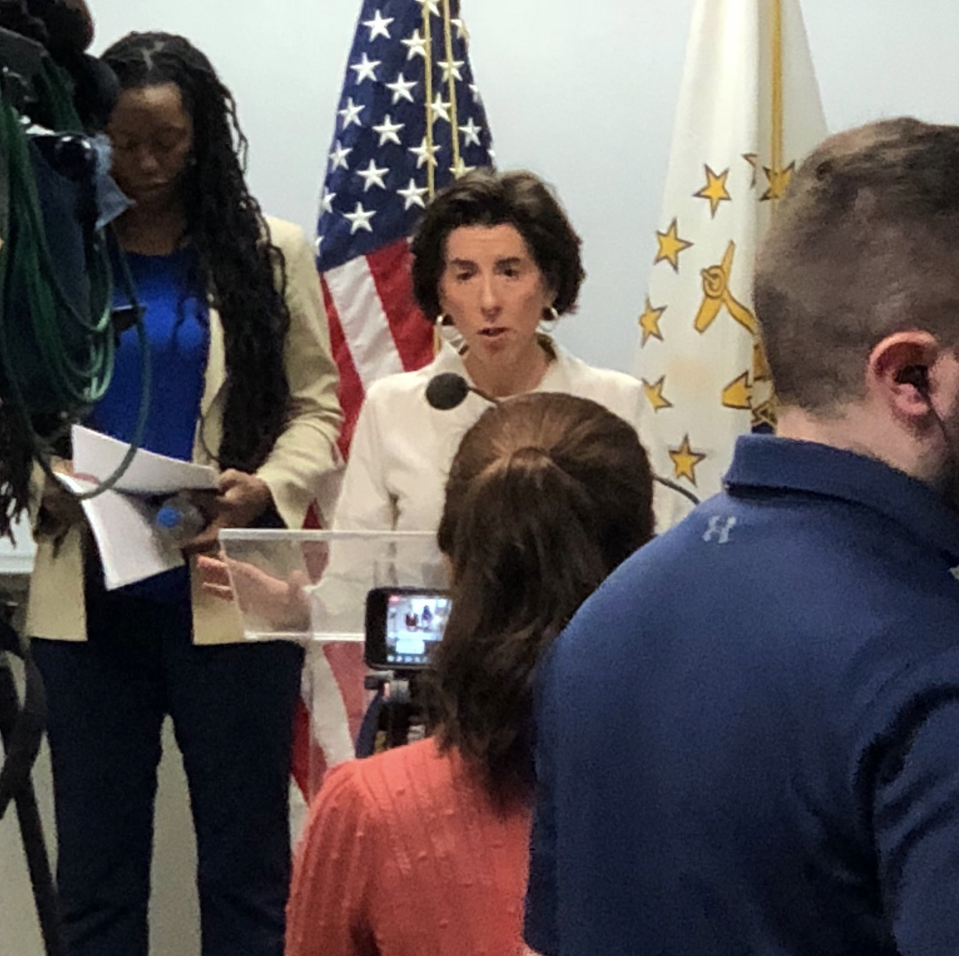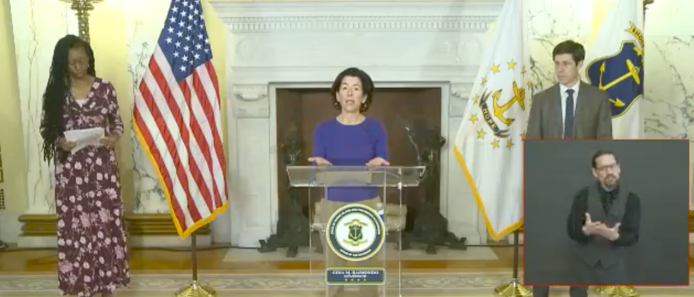 On March 24, 2020, at a press conference, Raimondo and then-Department of Human Services Director Courtney Hawkins announced that the state of Rhode Island had "partnered with Care.com to increase child care access for frontline workers responding to the COVID-19 crisis. In addition to providing 90 days of ‘free, premium access’ to their services, Care.com has created portals specifically for frontline workers and caregivers in Rhode Island.”