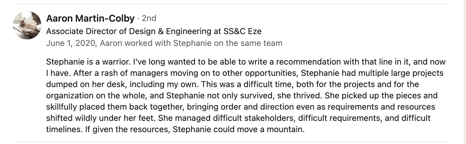 We found this endorsement of her skills on her LinkedIn page in doing our due diligence. Beauté is just what Rhode Island needs.