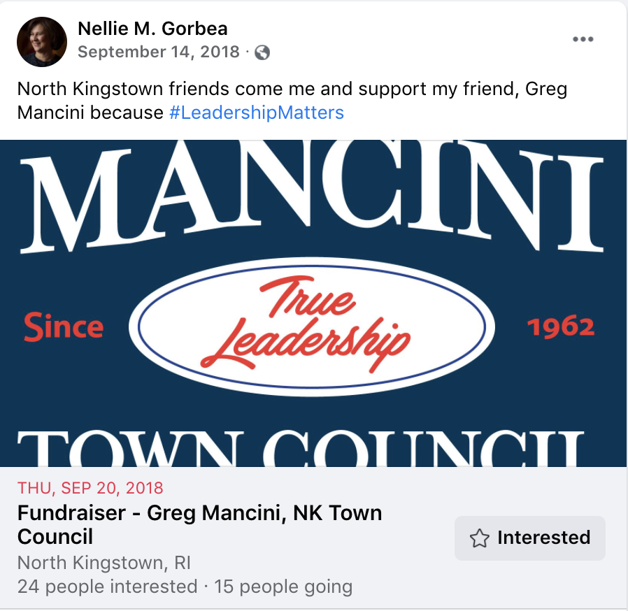 Gorbea, who is term-limited, has not formally announced a run for governor, but is fundraising relentlessly. In the 4th quarter of 2021 -- the most recent reporting period -- Gorbea raised the second-highest total behind Providence Mayor Jorge Elorza, among potential gubernatorial candidates. She raised $103,422 for the quarter.
