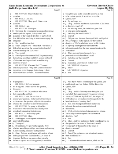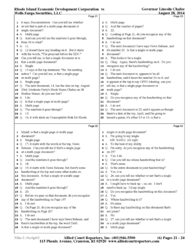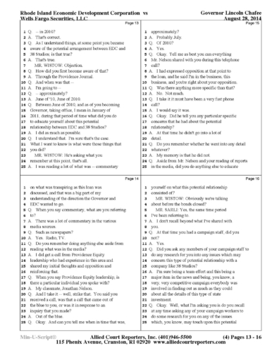 Chafee Deposition Part 1 - See Slideshow Below
