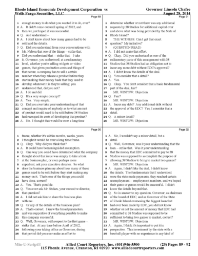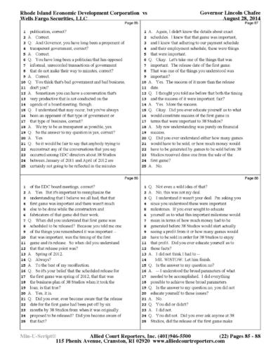 Gov. Lincoln Chafee's 38 Studios Deposition and Exhibits