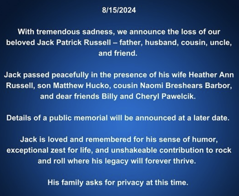 Great White Singer Jack Russell, Station Nightclub Fire Survivor, Dies at 63