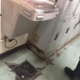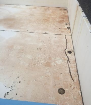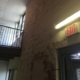To add on to the missing sign, one of the entrances consists of a broken floor and stained carpet.
