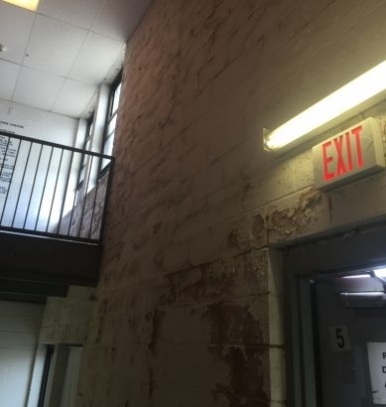 The paint on the walls of Sackett Street Recreation Center is chipping away fairly quickly. This wall has lost a good amount of paint already and there is more falling off.