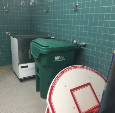 There doesn't seem to be enough storage space at South Providence, due to the fact that there are all sorts of items stored in the locker room showers.