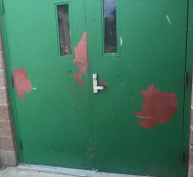 An entrance to West End has a lot of the paint peeled off which doesn't make a great appearance.