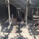 Torn and worn down workout equipment is shown in this picture. Old and rusty weights are all over the gym with no organization.