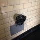 A tile is missing underneath the water fountain at the West End Recreation Center.