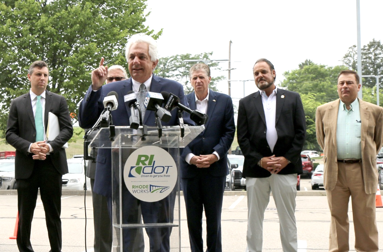 L-R Rep. Seth Magaziner, RIDOT Director Peter Alviti, Gov. Dan McKee, Laborers' Michael Sabitoni, and Speaker Joe Shekarchi PHOTO: RIDOT, State of RIFederal Highway Administrator (FHWA) Shailen Bhatt is scheduled to tour the Washington Bridge on Monday along with Governor Dan McKee, RI Department of Transportation Director Peter Alviti, members of the Congressional delegation, and other officials.