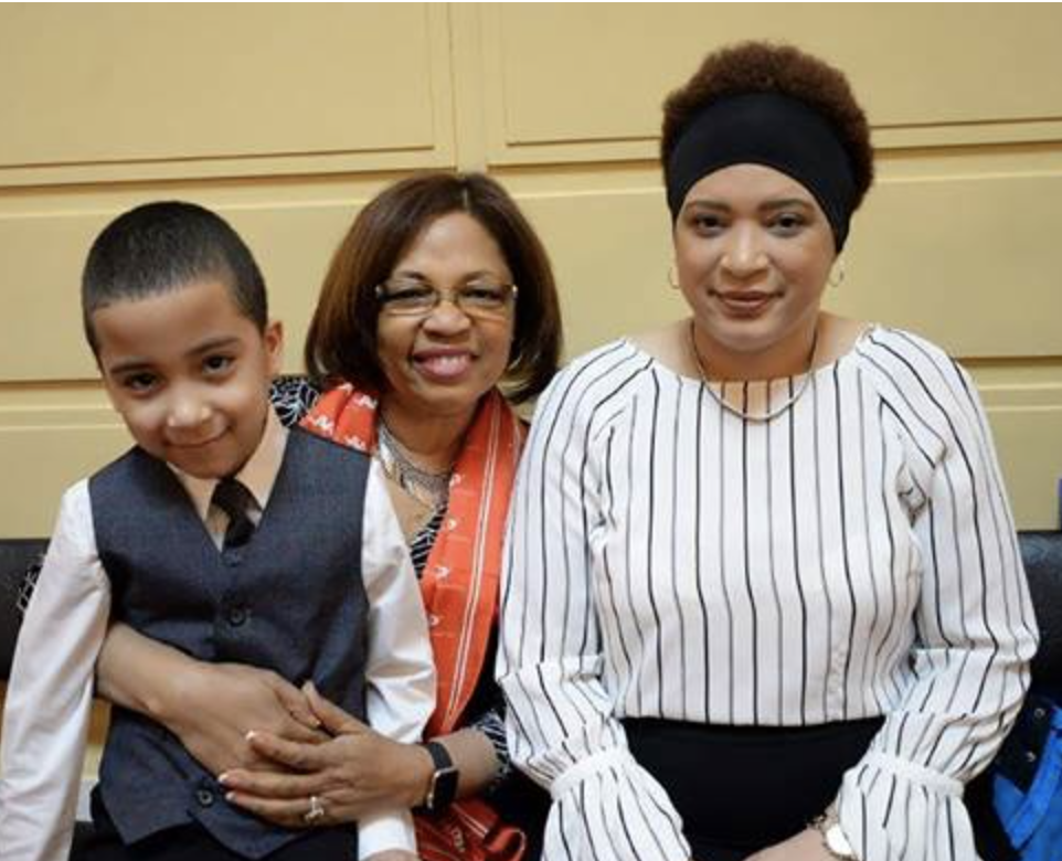 Rep. Grace Diaz (D-Dist. 11, Providence), center, poses with Angel Jimenez, the 7-year-old-hero who alerted adults to a fire at Hasbro Children’s Hospital, and his mother Francisca Jimenez in the House chamber on Thursday.Representative Grace Diaz welcomed seven-year-old Angel Jimenez to the House chamber on Thursday.