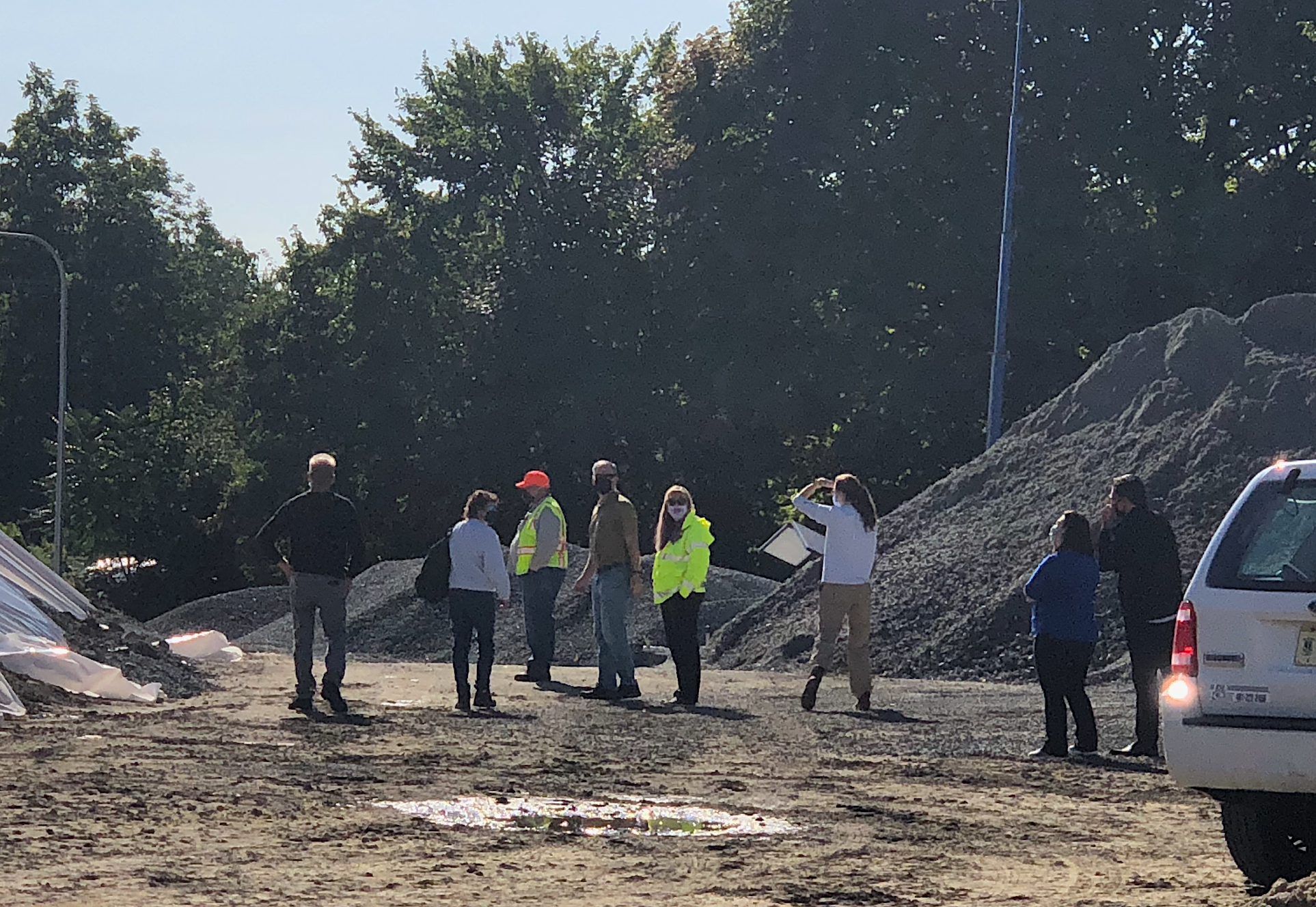 RIDOT contractors on the site taking test samples. Those were rejected by RIDEM and more samples and tests were conducted in Sept. 2020. PHOTO: GoLocalBig Lie Internally and Externally
