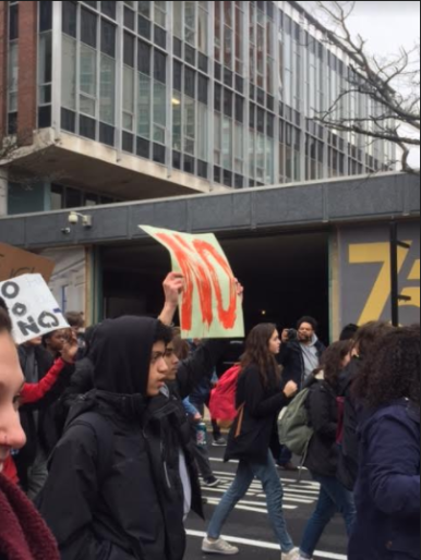 Hundreds of students -- and demonstrators -- marched in protest of President-elect Donald Trump in Providence on Friday, just before Trump was officially sworn in as the 45th President of the United States.