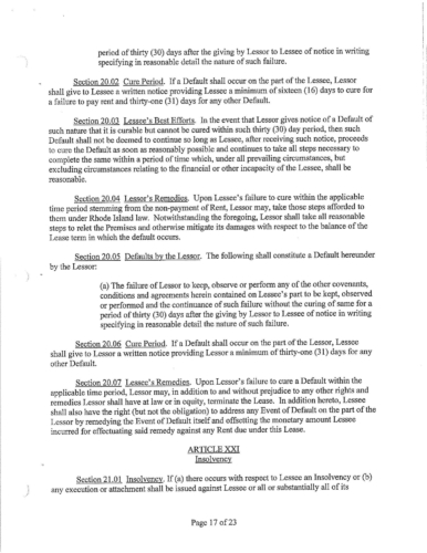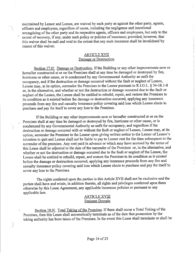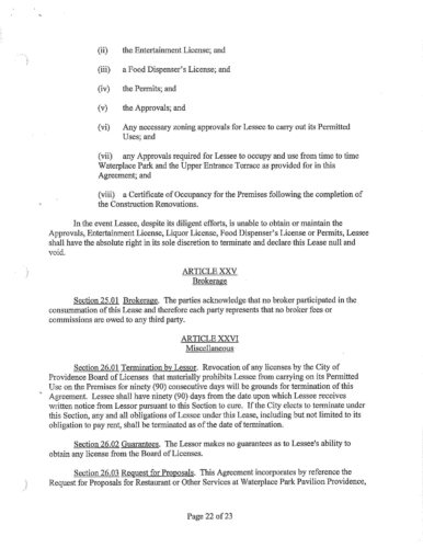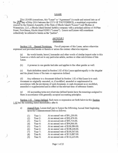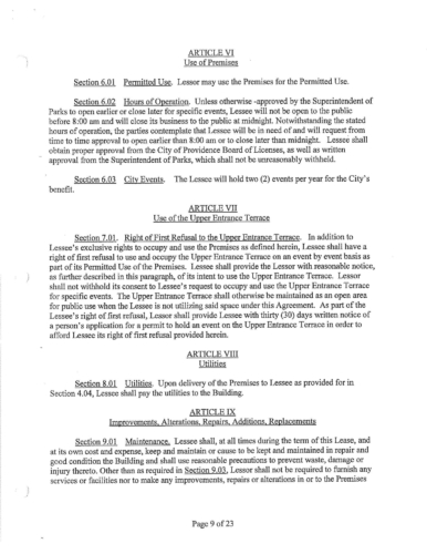 Mota and Pontarelli will pay less than one-third of their first year's payments. According to the lease signed with the city of Providence, the lease could be terminated 15 days after missing a payment.
