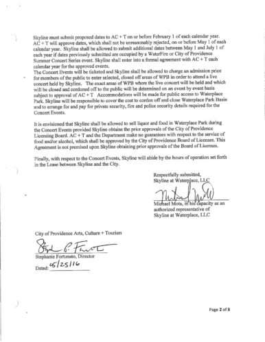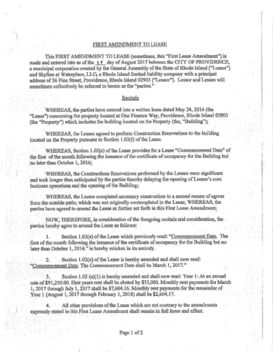 By June 2017 and thousands behind in payments, the Skyline crew were back re-negotiating with the city of Providence and asking the forgiveness of $35,000 of past due payments.