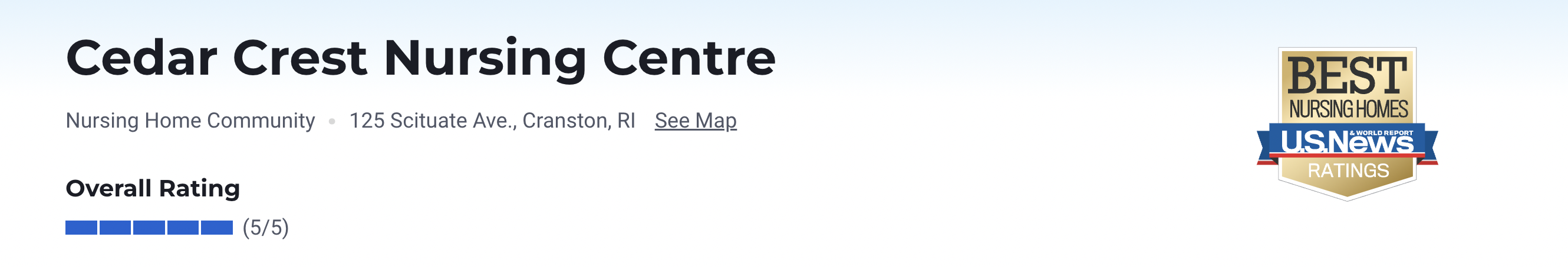 U.S. News and World Report ranks nursing homes across the country. According to U.S. News, Cedar Crest Nursing Centre in Cranston is one of six top facilities in Rhode Island.