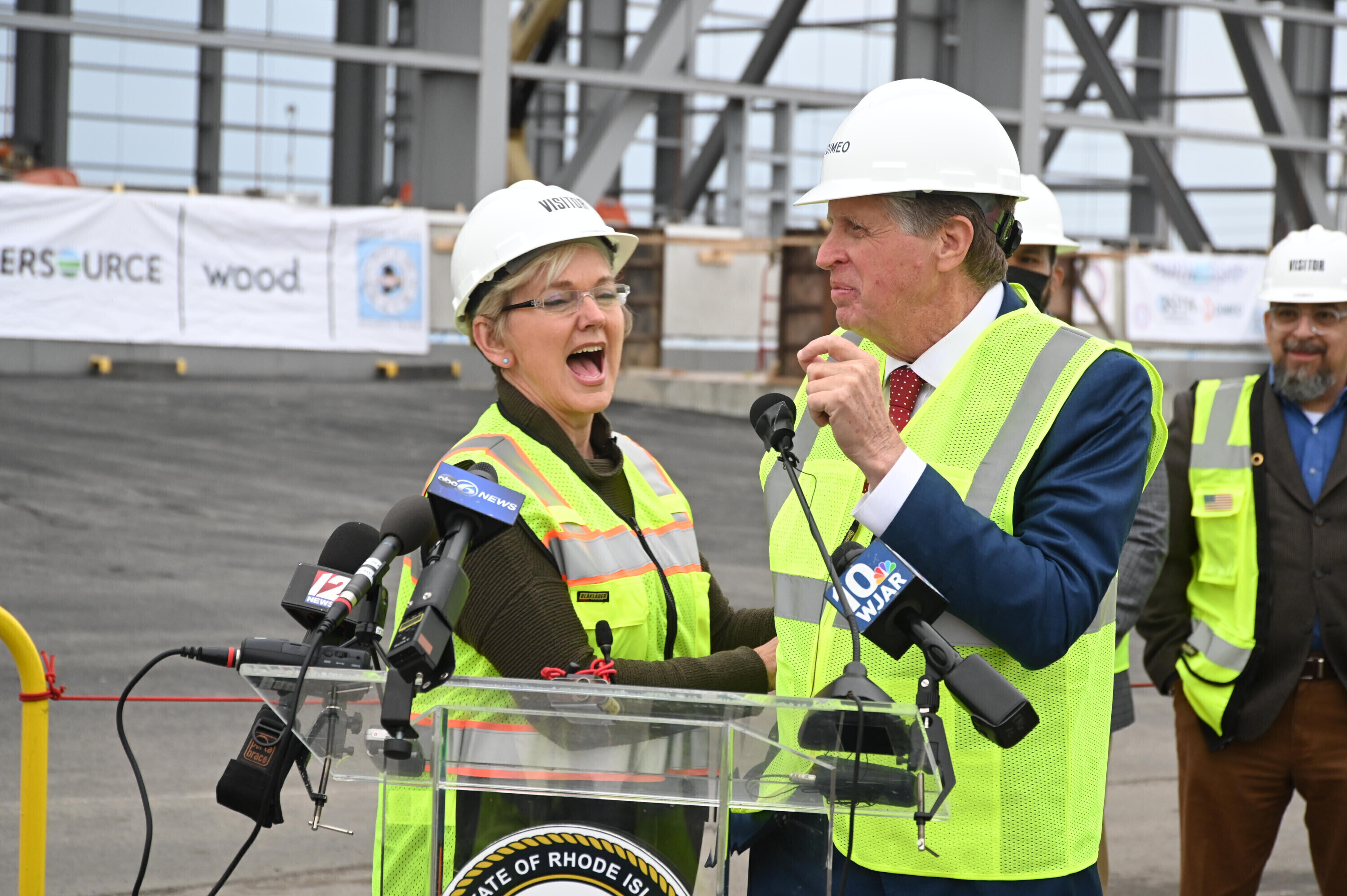“In order to get our offshore wind projects completed, we need the people doing the work. A few of our offshore wind workers are here tonight and I want to thank them: Nicole Kent of IBEW Local 99, Nicholas Russo of Laborers Local 271 and Jennifer O’Dwyer of Ironworkers Local 37. I want to recognize them and everyone who is helping us continue our progress on offshore wind. Thank you all for being on Team Rhode Island,” said McKee.