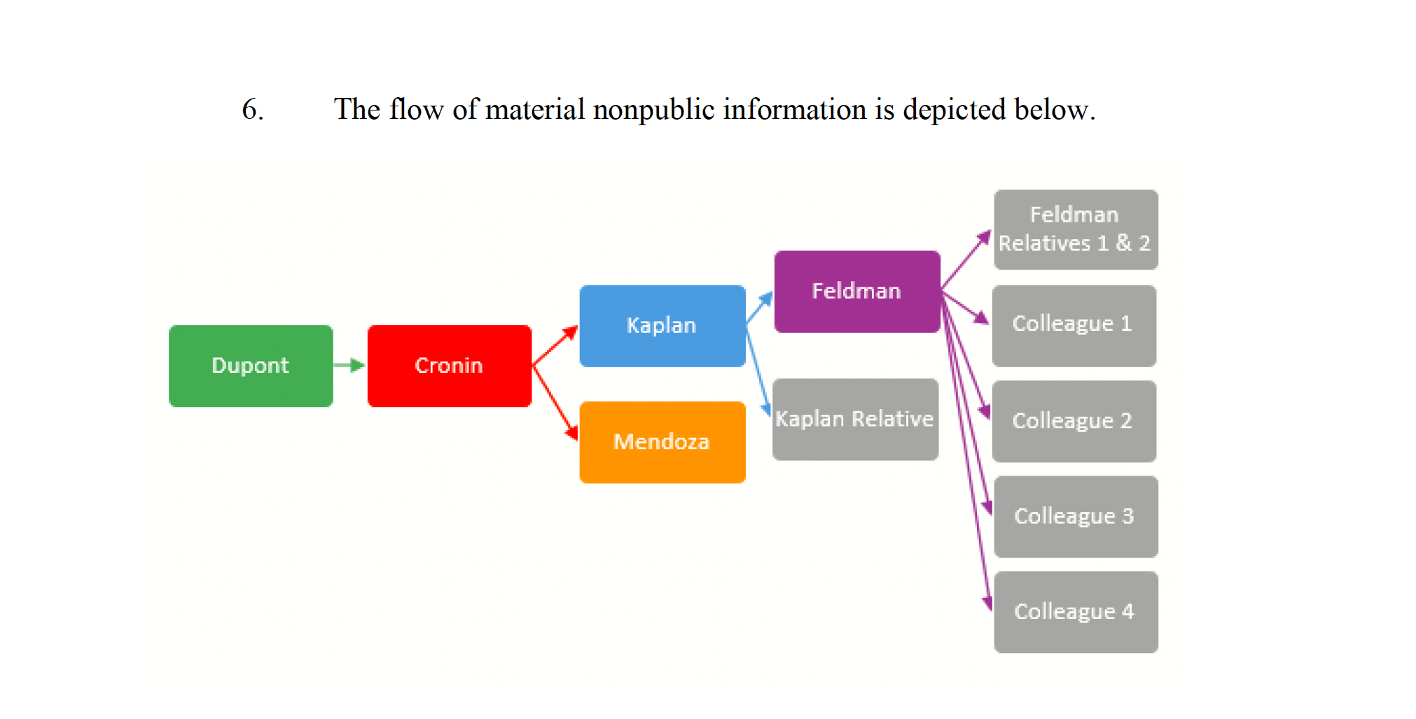 The SEC charges that, “Cronin traded on the information that Dupont had tipped him, purchasing Portola stock and call options – including short-term, out-of-the-money call options – ahead of the announcement. In addition to trading for his own account, Cronin unlawfully provided the material nonpublic information he received from Dupont to his friend Kaplan, who then, in turn, unlawfully further passed the information to his friend and colleague, Feldman."
