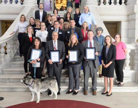 PHOTO: RI General AssemblySpeaker Nicholas Mattiello, Deputy Speaker Charlene Lima, Senate Judiciary Chairwoman Erin Lynch Prata, and Sen. Stephen Archambault were honored with the Humane State Legislator Award by the Humane Society of the United States.