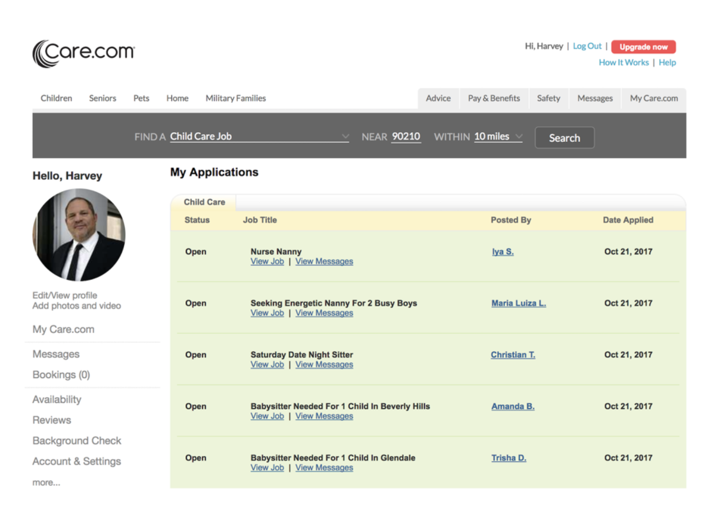 Dorsey said in developing his story there were a number of red flags. "So I applied to join care.com as Harvey Weinstein and they have you enter all this info. So, I made up the name. I used the email address "harveythebabysitter@gmail.com," he said -- using an actual picture of Weinstein.