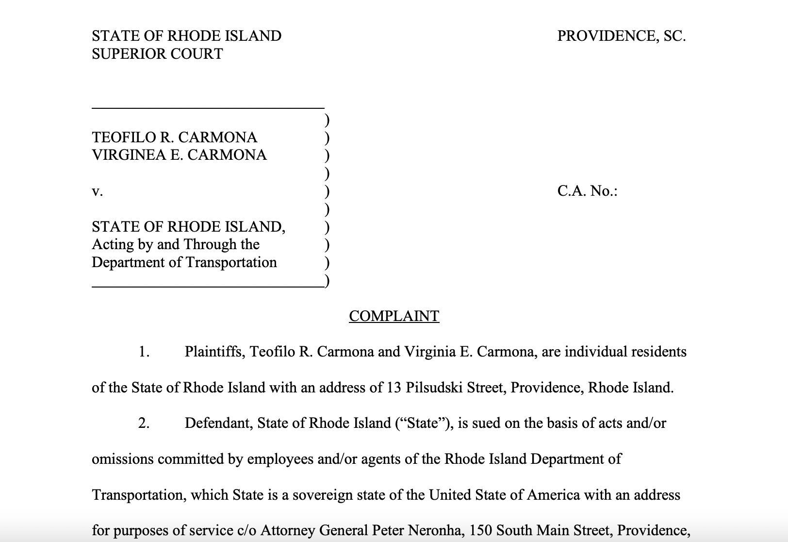 Counsel for the neighbors suing RIDOT -- the Providence law firm DarrowEverett -- was unaware that Neronha's office had decided to shift the defense of the lawsuit to an outside counsel.