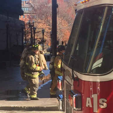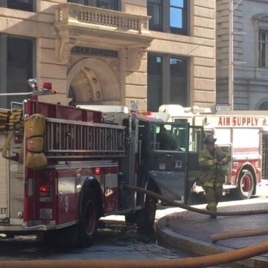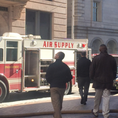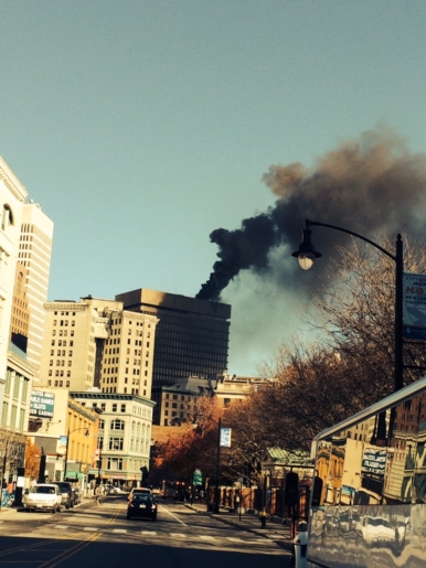 Textron blaze from below on Weybosset Street at 11:20 a.m.