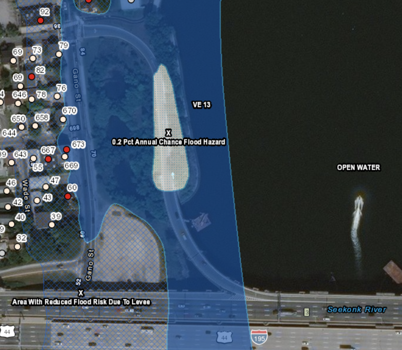 According to data from both the federal National Oceanic and Atmospheric Agency, and the Rhode Island Sea Grant and the University of Rhode Island’s Coastal Resources Center, the Gano Street area in question -- where RIDOT wants to demolish the existing off-ramp and construct a new on-ramp -- could be underwater based on a range of known predictive scenarios in the next 30 years.