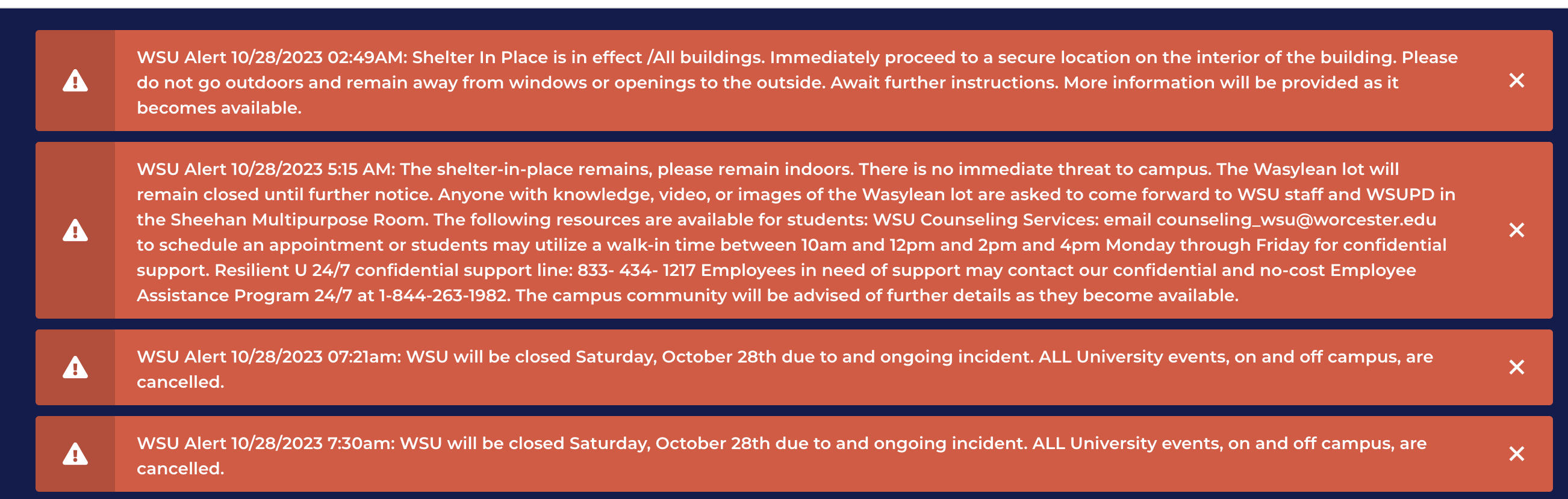 Shooting at Worcester State University - Homecoming and Family Weekend Canceled