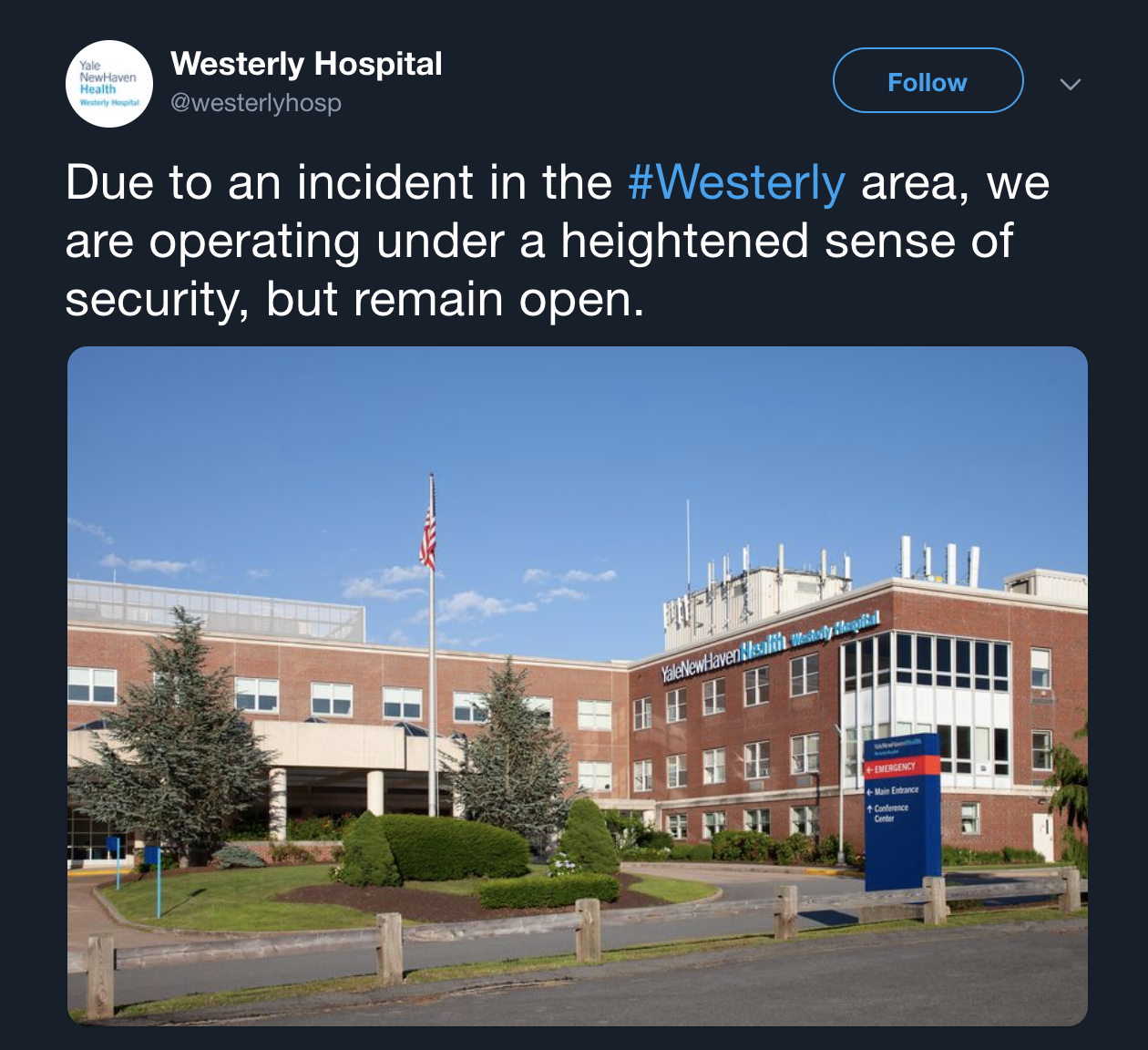 Westerly Hospital now states that they are operational -- earlier they had been in lockdown.