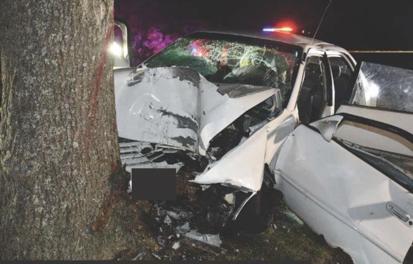 When officers arrived at the scene, they said found a Toyota Corolla against a tree with "heavy front-end damage and both airbags deployed."