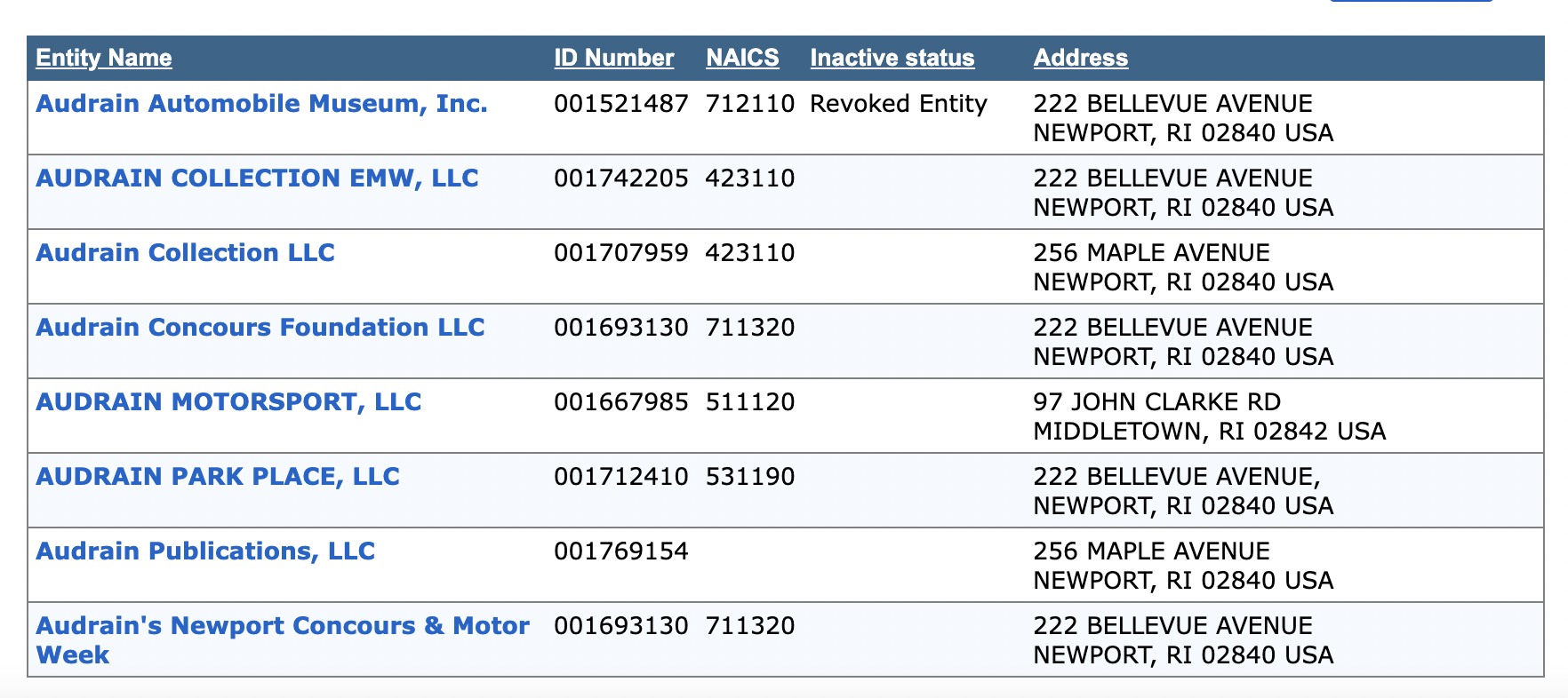 According to the Rhode Island Secretary of State's database, Audrain Auto Museum’s business registration with the state of Rhode Island was revoked on September 9, 2024.