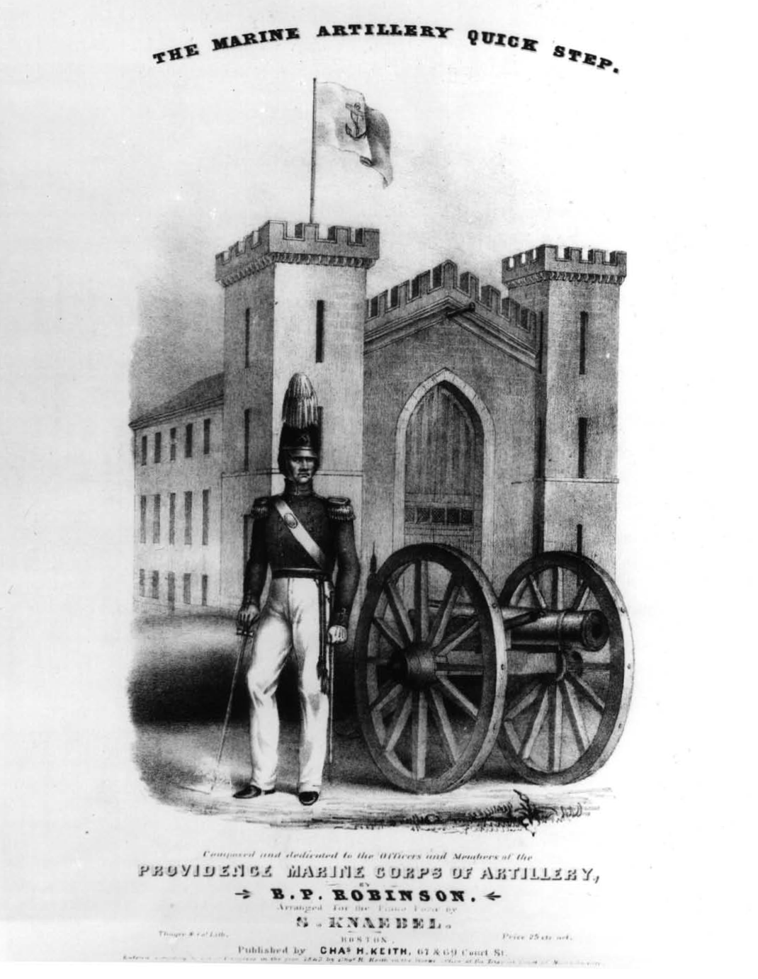 "It was erected for the First Light Infantry, but that corps found itself eventually unable to complete payment for the building it had constructed, The building was then, in the 18S0s, taken over by the state, which leased back the property for a 1,000-year period at an annual rate of six-and-one quarter cents. During the Dorr Rebellion in Rhode Island, in 1842, state ammunition and state troops were housed in the arsenal along with the Marine Corps of Artillery and the Kentish Guards of East Greenwich, who had been called up to help protect the building," said the application.
